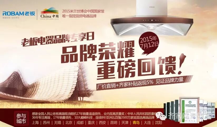 7月12日(10:00-17:00)是市北区辽宁路80号青岛装饰城老板电器特惠专享日,亲,您知道如何选购油烟机吗?如果不知道的话,就跟随齐家网一起来学习一下吧!