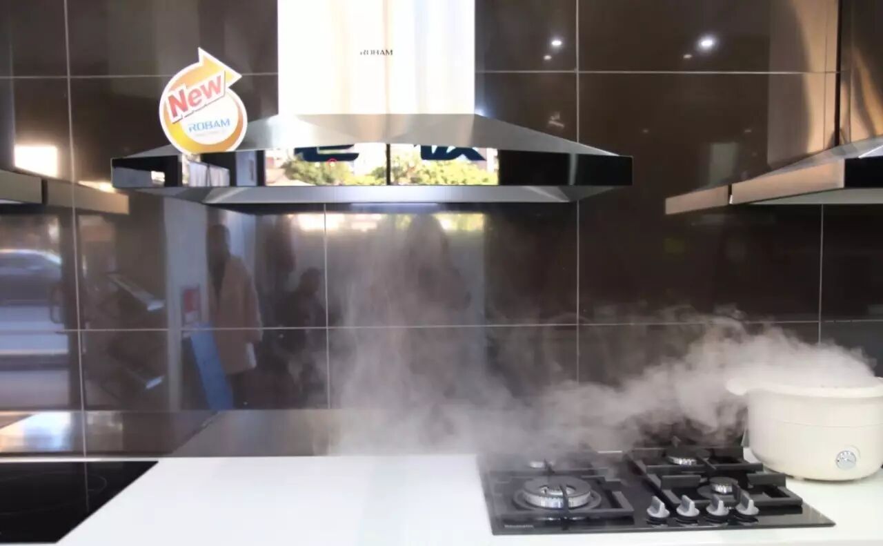 开启老板抽油烟机,烟雾瞬间被吸走