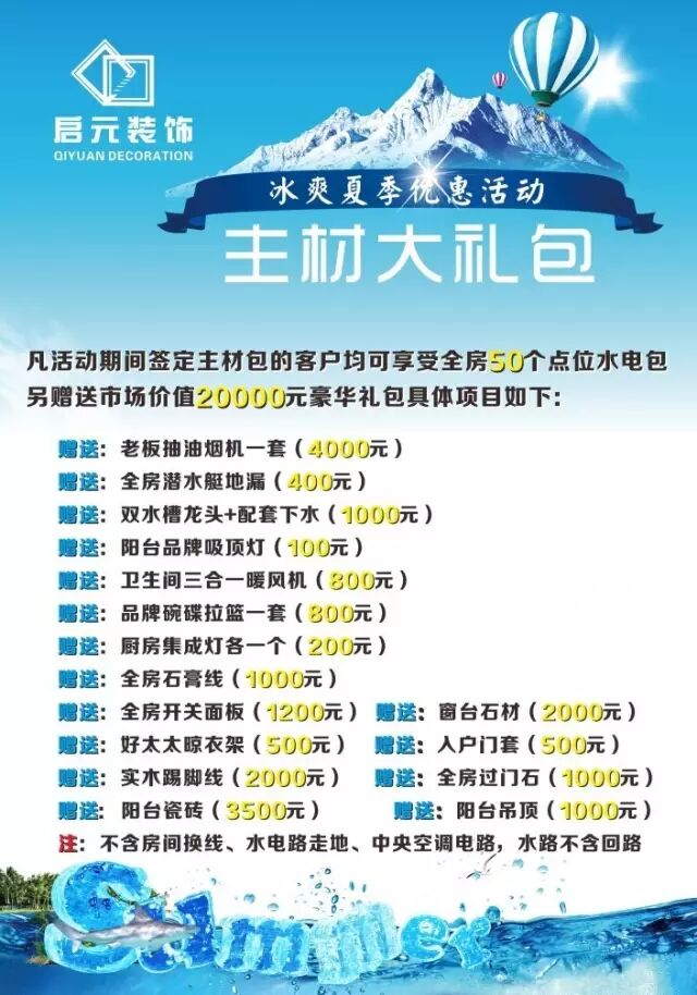 凡活动期间签定主材包的客户均可享受全房50个点位水电包