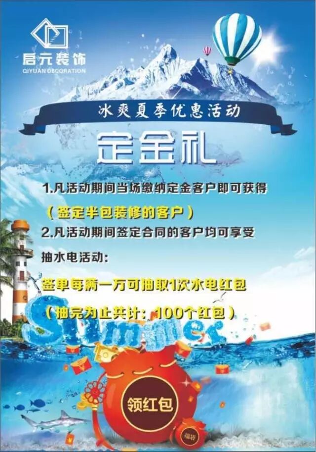 2.凡活动期间签定合同的客户均可享受抽水电活动:签单每满一万可抽取1次水电红包(抽完为止共计:100个红包)