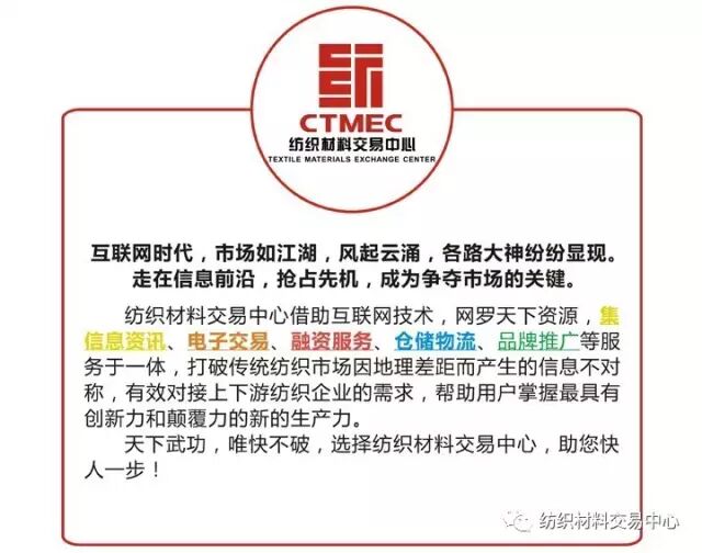 添加朋友搜索纺织材料交易中心或扫描以下二维码