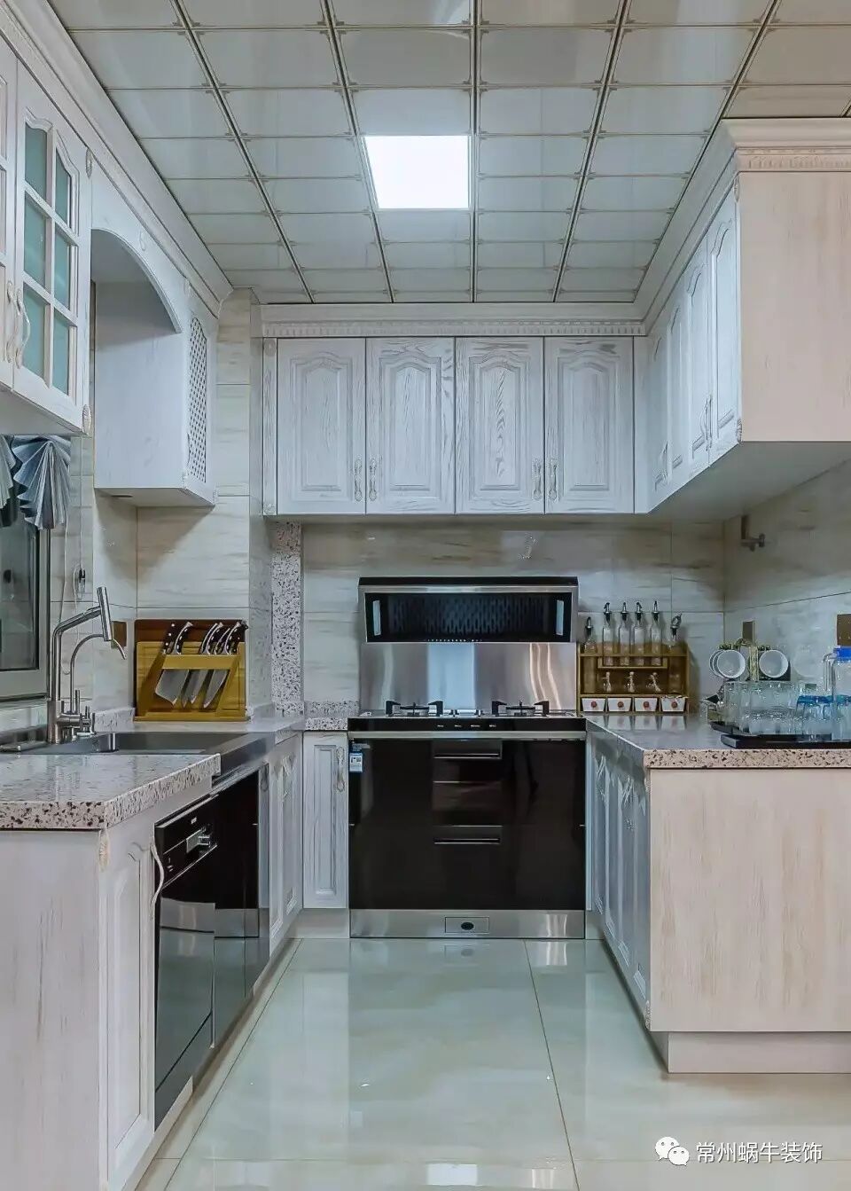 ▼欧式+集成灶的搭配,看惯了欧式+顶吸的设计,做集成灶的欧式看起来还是比较别扭的;