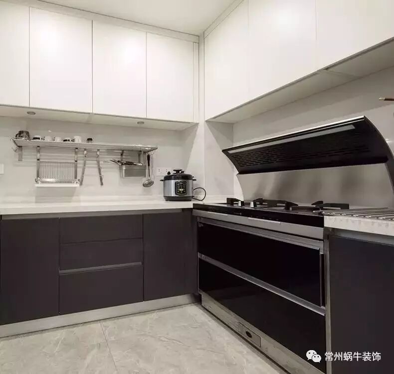 ▼现代黑白灰的格调,搭配集成灶就显得美观了不少;