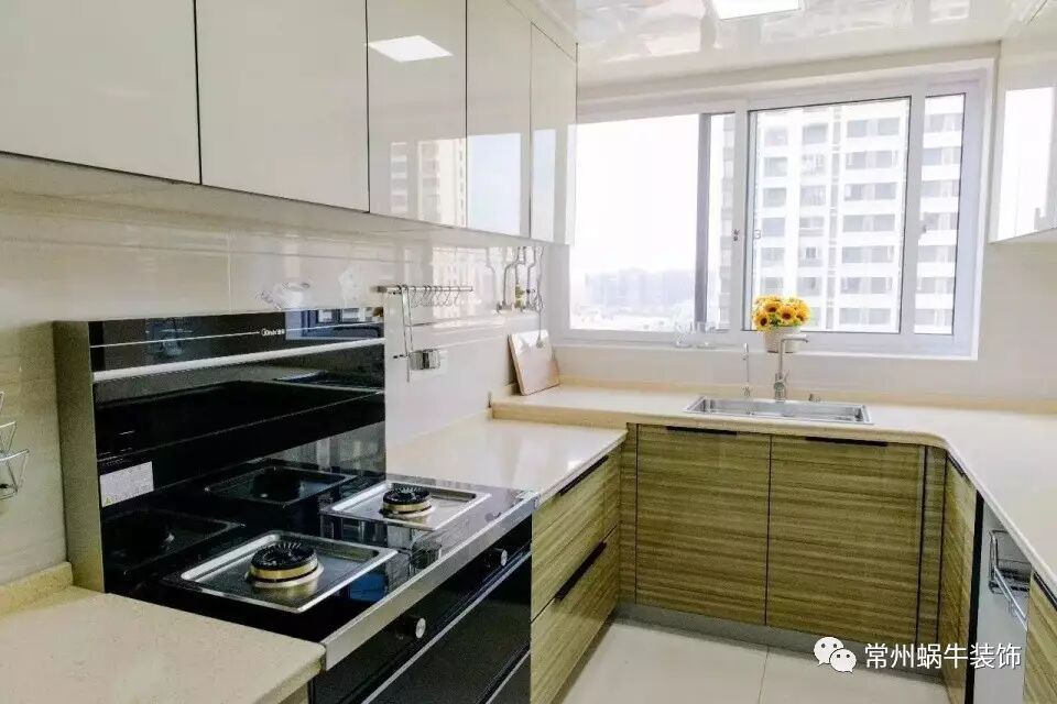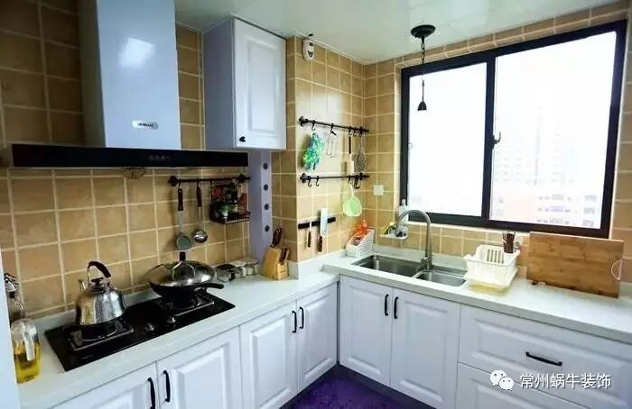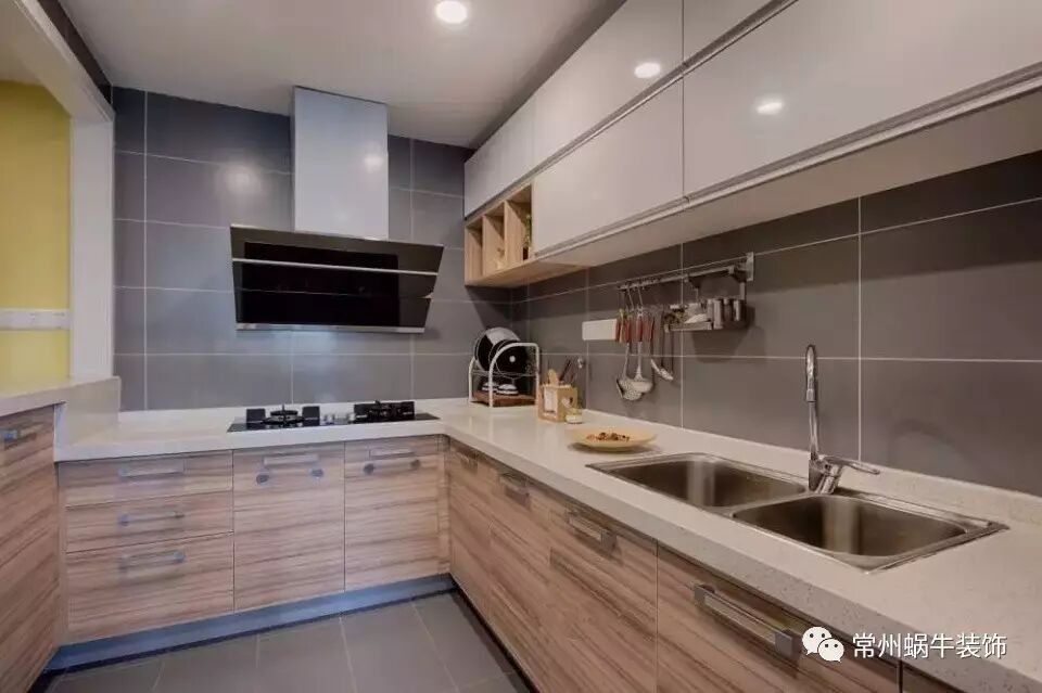 ▼两侧做橱柜,中间嵌入侧吸油烟机,这种做法相对比较实用派;
