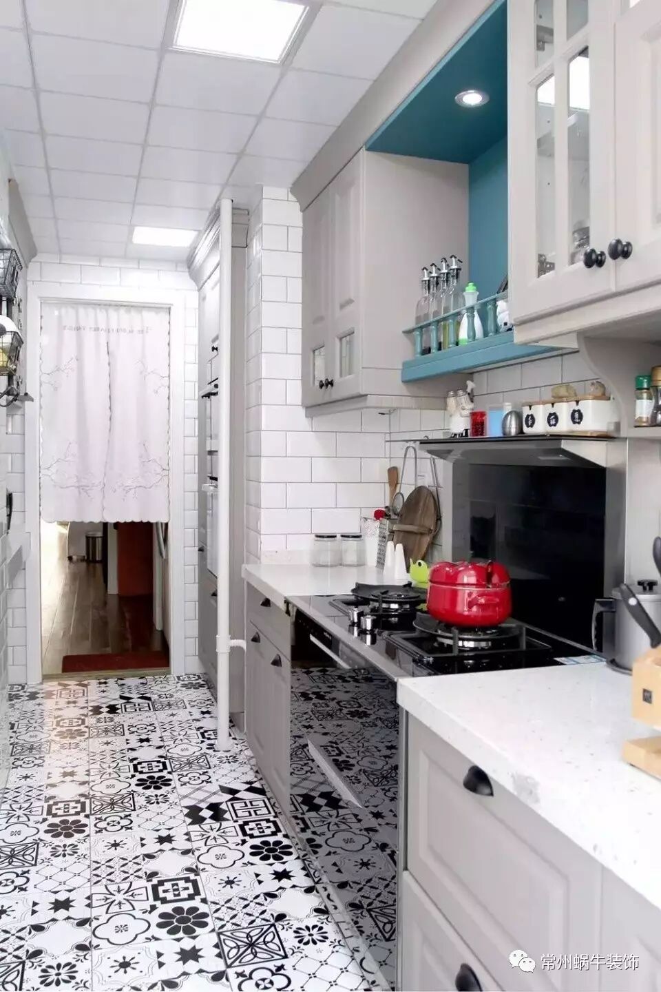 ▼顶吸油烟机,风口对着灶具,平视的视觉更多的是聚焦在厨房的墙面等位置,像下图这样厨房墙面做了独特的造型砖的,那么效果就相当的好了;