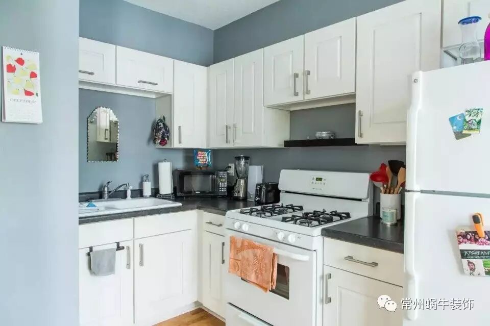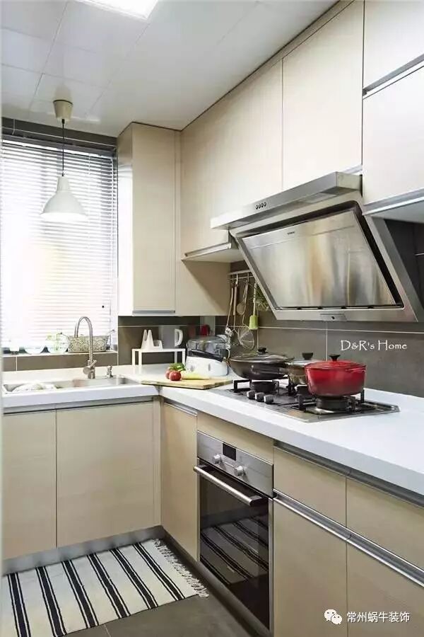 ▼白色的橱柜主体与油烟机的色调接近,顶吸油烟机容易碰头,各位个子高的慎重;