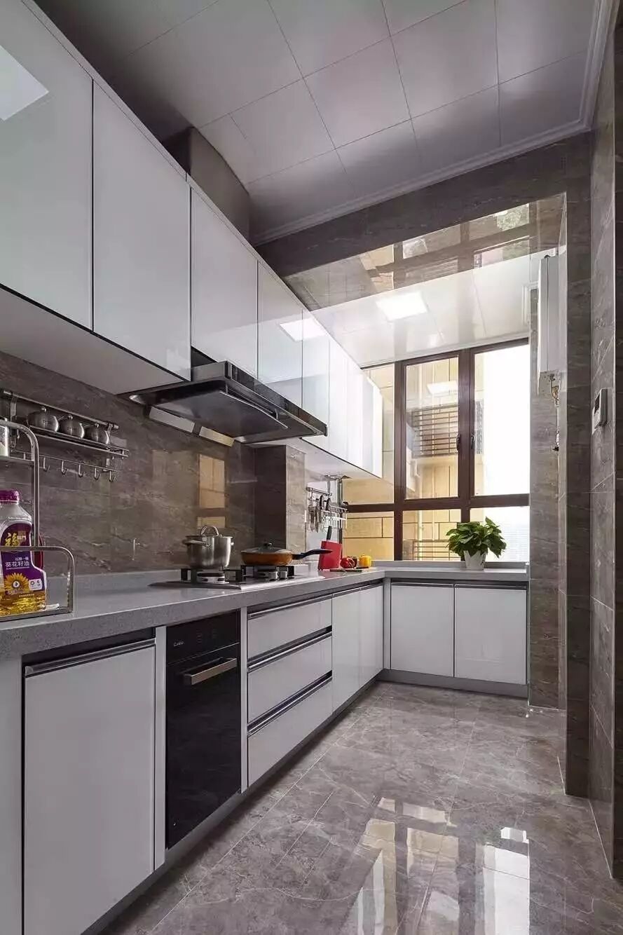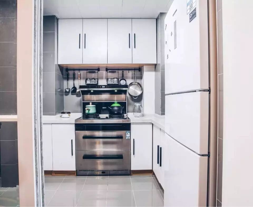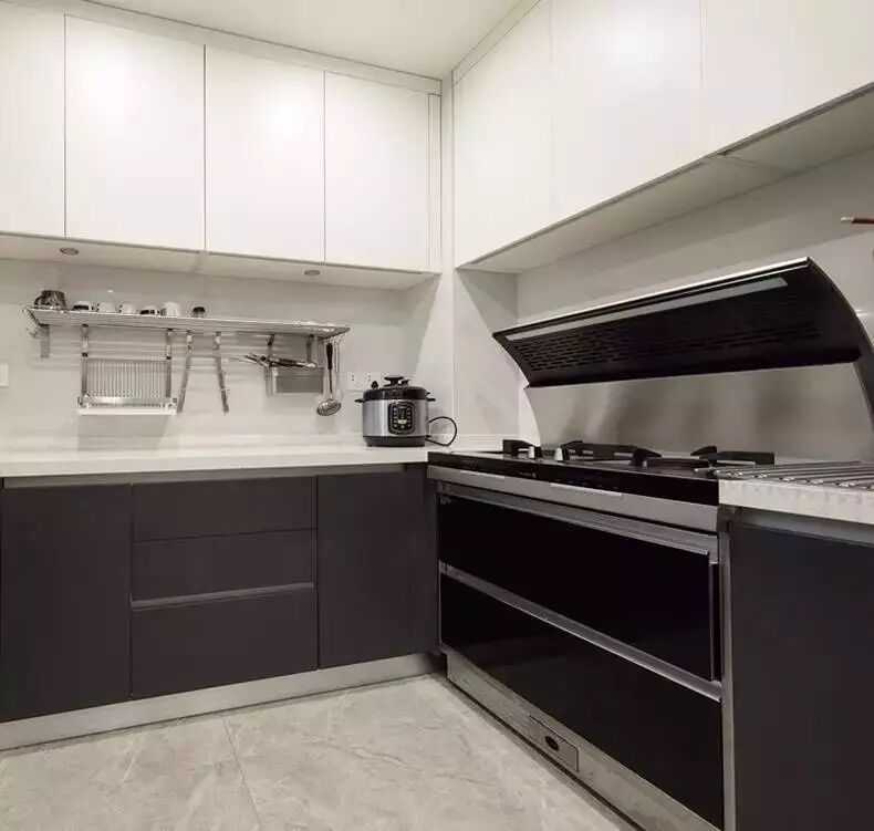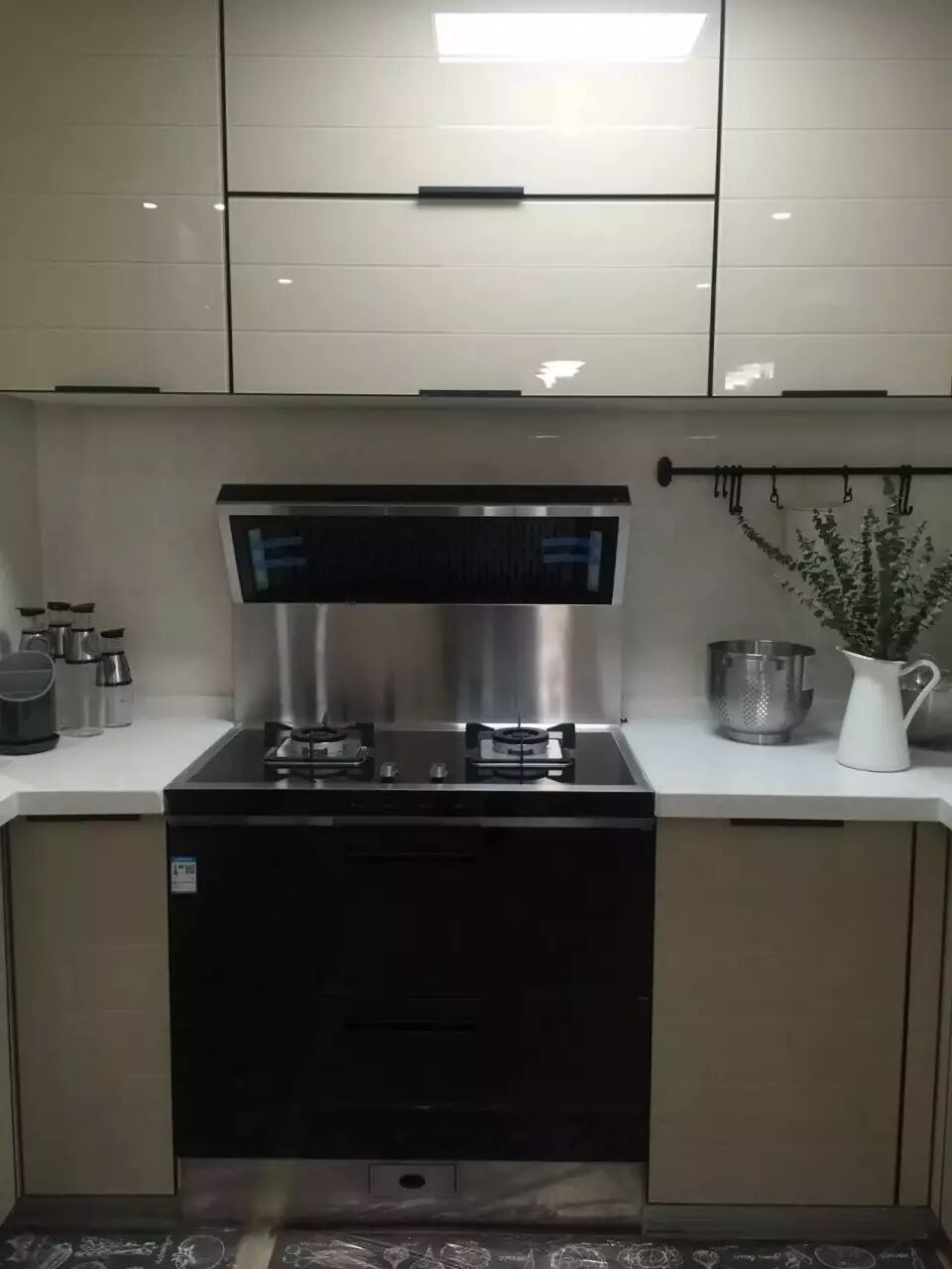 ▼现代黑白灰的格调,搭配集成灶就显得美观了不少;
