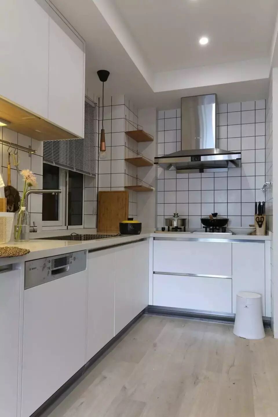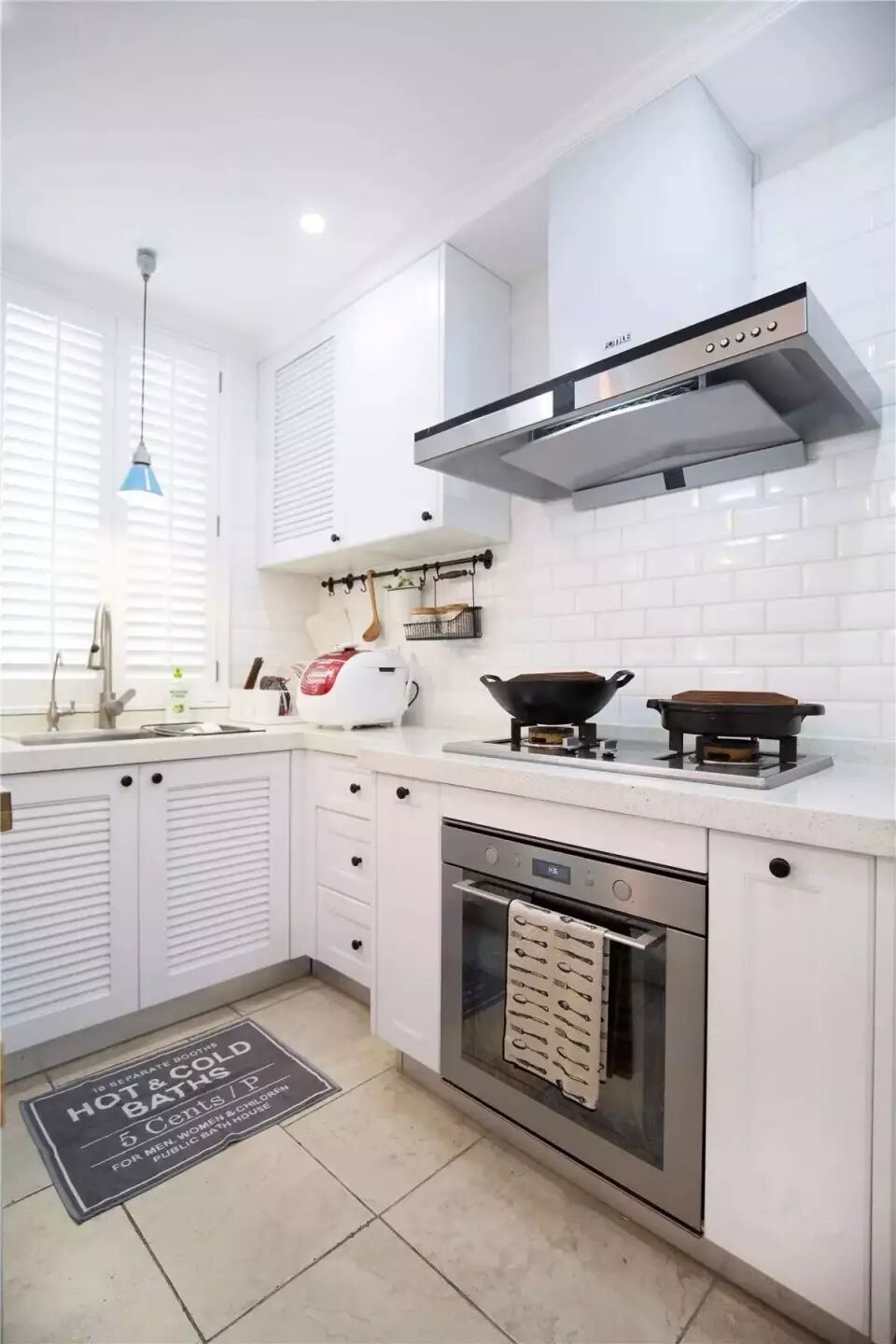 ▼白色小砖,结合白色橱柜,整体干净洁白的厨房氛围,搭配上一个白色主体的油烟机,显得现代时尚又美观大方;