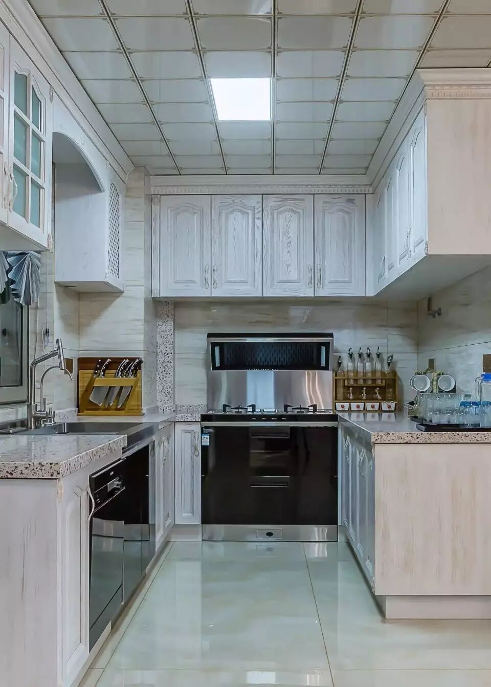 ▼欧式+集成灶的搭配,看惯了欧式+顶吸的设计,做集成灶的欧式看起来还是比较别扭的;
