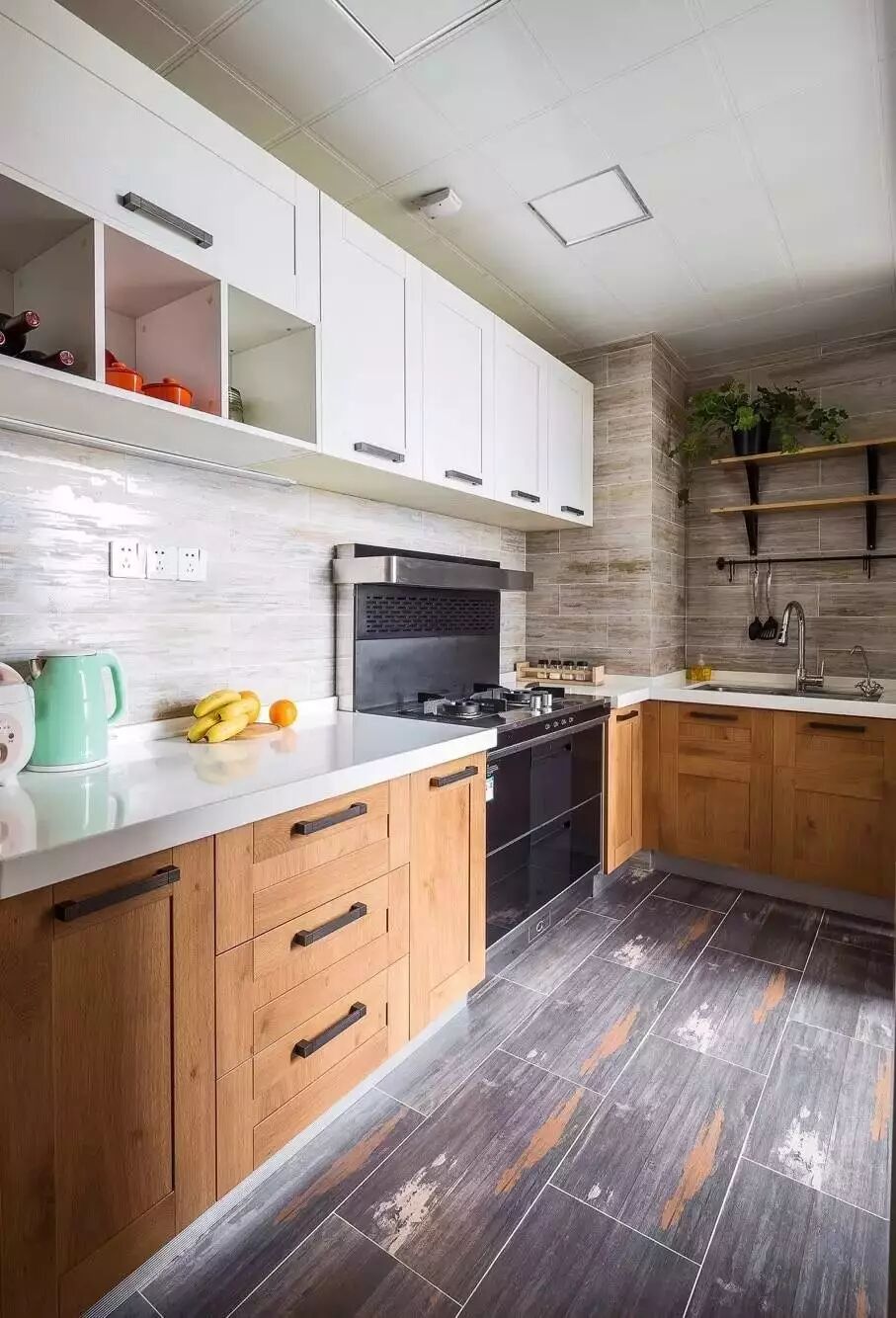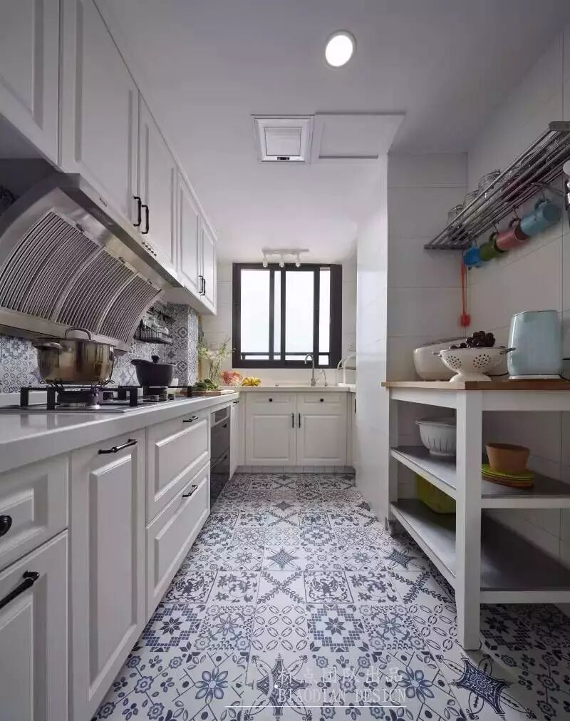 ▼顶吸油烟机,风口对着灶具,平视的视觉更多的是聚焦在厨房的墙面等位置,像下图这样厨房墙面做了独特的造型砖的,那么效果就相当的好了;