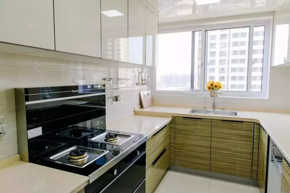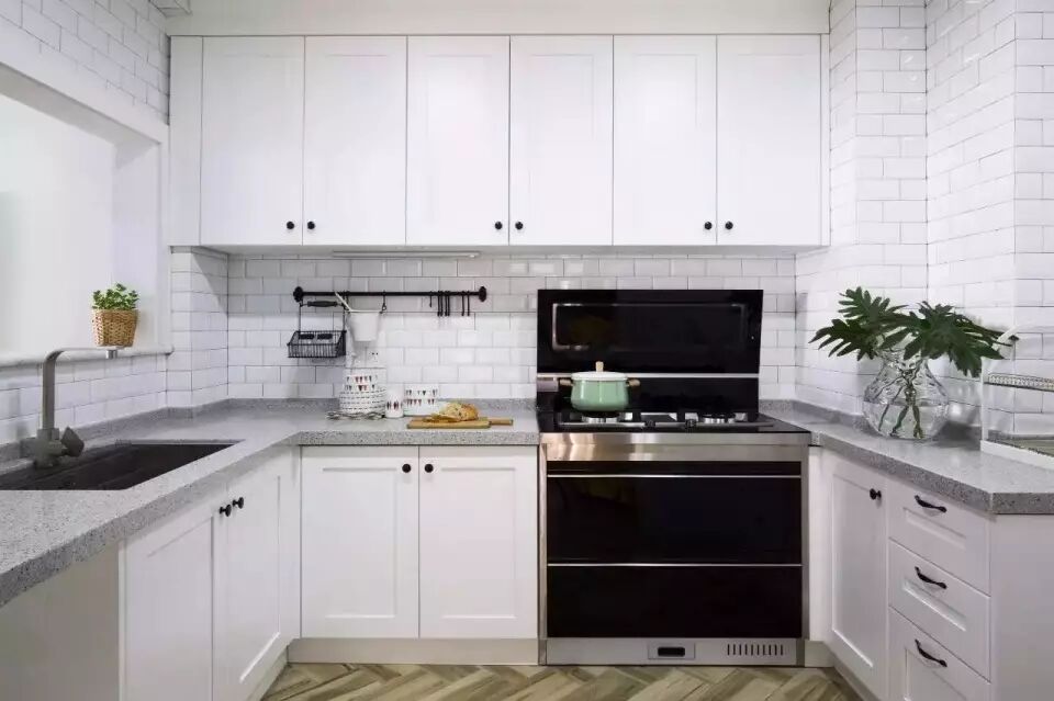 ▼对于白色调的厨房,可以选择白色的集成灶,总体和谐的色调更加美观大方;