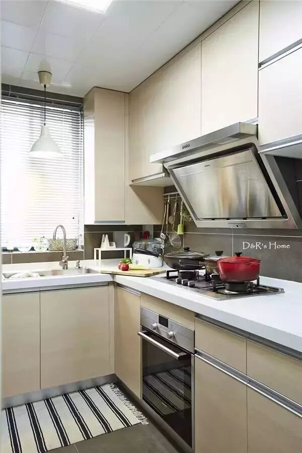 ▼整体现代简洁的厨房,一方面侧吸的可以让厨房更加干净,而通过橱柜包装机身,整体也是比较的美观;