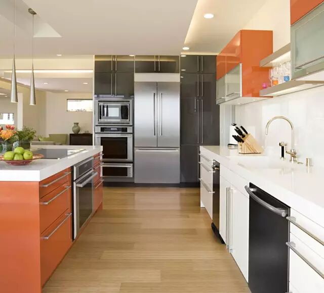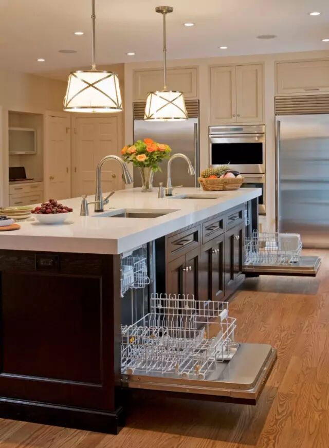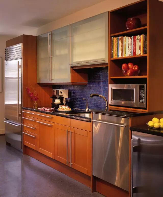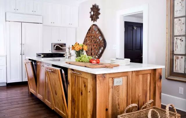 通常在设计橱柜的时候,可以巧妙的将其设计进去,这样不但节省空间,而且美观。