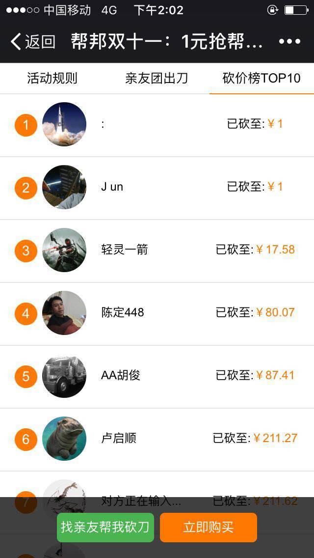 进入链接后,可先自己砍一刀,点击“找亲友帮我砍刀”,可让朋友帮助砍价,越多朋友帮忙,砍价越多。
