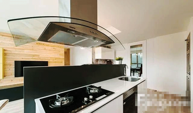开放式宜家风格厨房装修,巨大的抽油烟机提供强大马力,保证了客厅不会被油烟问题困扰。这是在选择厨房装修时重要的问题之一,如果不能够充分吸收或隔绝油烟还是建议采用封闭厨房。
