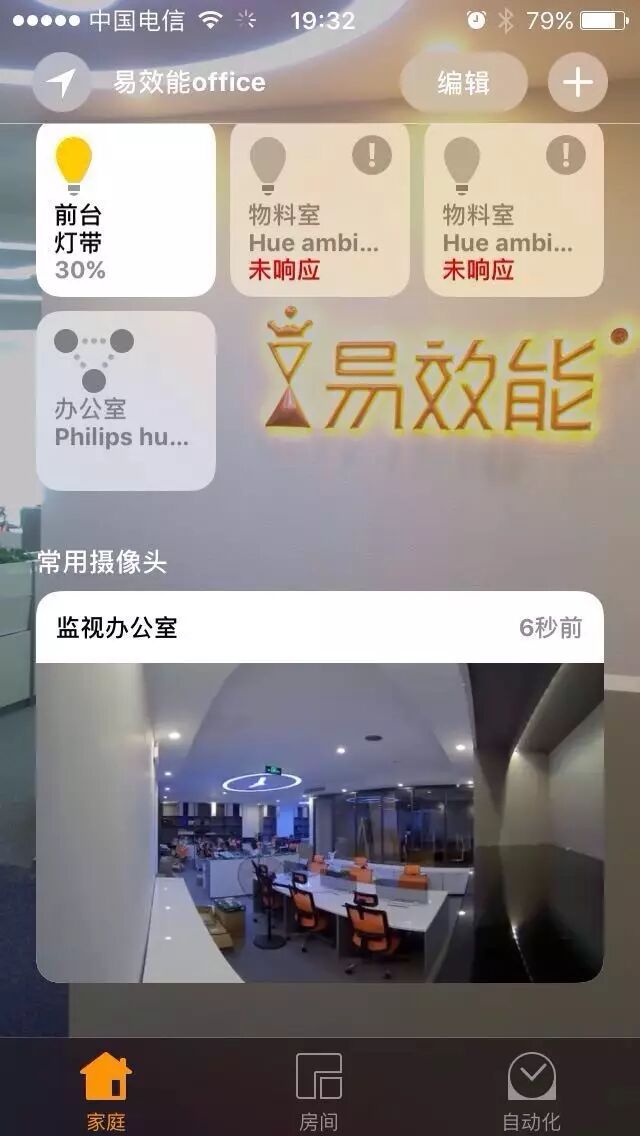 易效能智能办公室的所有设备都可以用苹果手机上的HomeKit进行控制并且通过iPhone实现远程操控,比如在到办公室之前先打开里面的空气净化器和窗帘等。
