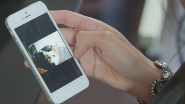 打开petbot的app,你就可以实时看到你宠物的影像并且喊它们的名字,它们就会听到。点击拍摄按钮就会抓拍你宠物的瞬间,保存并分享它们的照片。