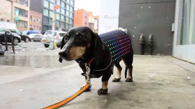 对于毛色偏深或者身形较小的狗狗,主人总是很担心夜晚带它们出门会走失,这时候会期待有个很酷的穿戴设备能保证它在夜晚中显眼而且安全。